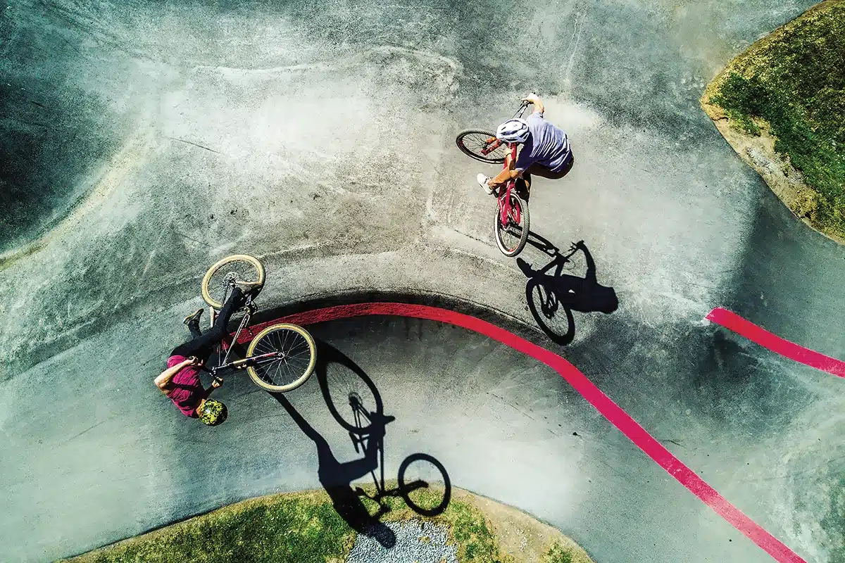 CC : Chacune de nos réalisations est unique. Nous voulons que nos pumptracks soient très intuitives pour les utilisateurs. Notre plus grande fierté est qu’aucun changement de configuration ne sera nécessaire pour continuer à défier les riders à des vitesses et niveaux plus élevés au fur et à mesure que leurs aptitudes s’améliorent.