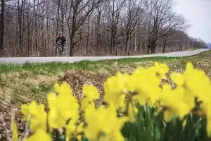 Le chemin de Covey Hill bordé de jonquilles fait partie du parcours.