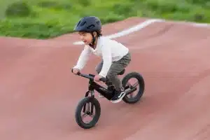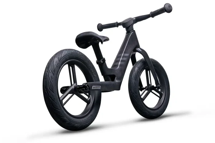 Les vélos d’apprentissage pour les enfants ne visent généralement pas la légèreté, sauf le nouveau Pre rCarbon de Giant. Cette draisienne est fabriquée  à partir de fibres de carbone recyclées, de thermoplastique et de nylon provenant de déchets océaniques (filets). De bonnes idées de matériaux à utiliser pour les vélos d’adulte… Outre le cadre de 2,5 kg, les roues monoblocs de 12 po et l’ensemble guidon-potence sont aussi en carbone. La géométrie permet au pilote en herbe d’être penché vers l’avant, ce qui facilite la poussée. Voilà de quoi préparer les coureurs de demain.
