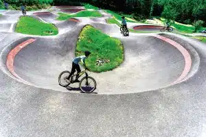 Les pumptracks asphaltées ont le mérite de durer plus longtemps et d’offrir peu de résistance au roulement.