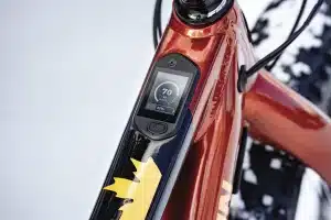 Contrairement à d’autres motorisations, l’ajustement du moteur ne nécessite pas une application extérieure. Le nerf de la guerre en la matière est le Jumbotron, un écran de contrôle intégré au tube supérieur qui fournit une foule d’informations comme la vitesse, la cadence de pédalage, l’autonomie de la batterie, le mode d’assistance sélectionné… Une mini-télécommande à trois boutons fixée au guidon permet de faire défiler les diverses fenêtres et les options. L’usage en est passablement intuitif, et on peut même définir ses propres modes d’assistance.