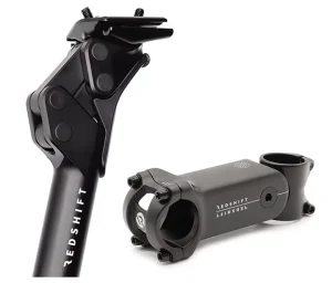 Vu la popularité du vélo de garnotte, pas surprenant que les potences et les tiges de selle à suspension reviennent à la mode. Elles réduisent la fatigue en absorbant les vibrations et les petits cahots. La potence, offerte en cinq longueurs et deux possibilités d’angulation, est fabriquée à partir de différents élastomères, histoire de fournir jusqu’à 20 mm de débattement. La tige de selle Shockstop est vendue en deux longueurs, et le débattement s’ajuste à l’infini à l’aide d’un assortiment de ressorts et d’une vis de précontrainte. • Voir le prix