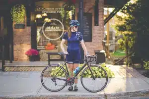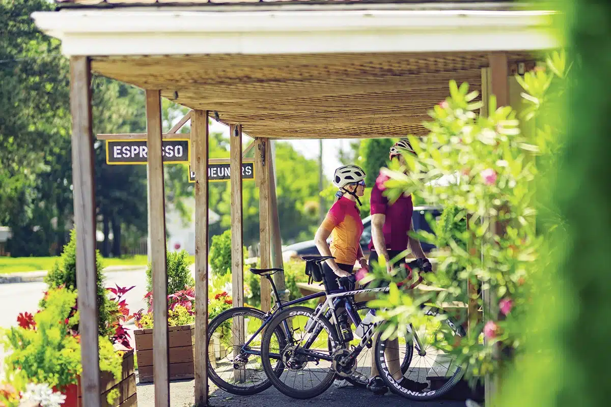 Quand les cyclistes passent dans les villes, ils s’arrêtent souvent pour consommer. Tourisme Cantons-de-l’Est © Ian Roberge