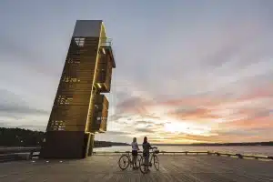 Avez-vous remarqué qu’il y a du nouveau du côté de la ville de Québec ? La promenade Samuel-De Champlain permet désormais de sillonner, à pied et à vélo, les berges du fleuve – qui ont longtemps été en mauvais état – dans un parc naturel superbement aménagé, accessible à partir des ponts jusque dans le secteur de la côte Gilmour. Le point fort est certainement la station de la Plage avec son bassin de baignade face au Saint-Laurent, son quai, ses chaises longues et son miroir d’eau. Ce lieu constitue une étape parfaite pendant la réalisation de la boucle cycliste du Corridor du littoral et du Parcours des anses. À la fin de l’itinéraire, il n’y a plus qu’à se laisser tranquillement ramener, en traversier depuis Lévis, dans le quartier du Petit Champlain.