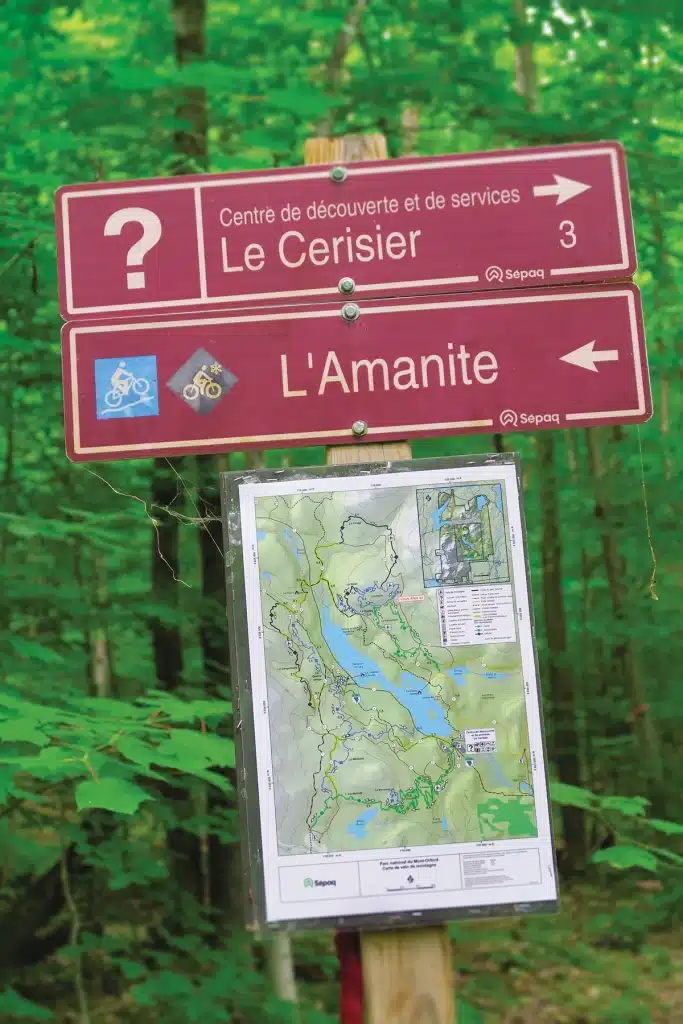 Comme les campings sont reliés aux sentiers par des pistes cyclables, il est possible de consacrer deux bonnes journées à l’exploration des sentiers, en commençant par le côté ouest de l’étang aux Cerises, suivi du côté est le lendemain. Les pistes étant tracées majoritairement dans des érablières, il y a de fortes chances que le décor soit superbe en automne. Cet aménagement de sentiers spécifiques au vélo de montagne est le premier réalisé dans le réseau de la Sépaq, et c’est un franc succès. Souhaitons qu’il fasse des petits.