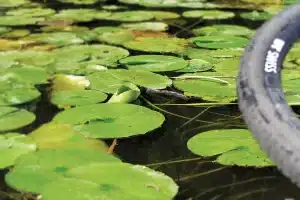 C’est incroyable comme le paysage est différent quand on est au cœur de la rivière. L’urbanisation laisse la place à une végétation luxuriante. Les zones de marais sont fleuries de plantes aquatiques, de grandes feuilles vertes flottant à la surface de l’eau. Sur le bord, les maisons sont parfois cachées par de hauts arbres. Au début de ma navigation, le cours d’eau est large. Lorsque j’arrive au niveau de l’autoroute 13, je slalome dans un chapelet d’îles. Sous le pont, ma voix résonne et j’entends le grondement sourd des voitures.