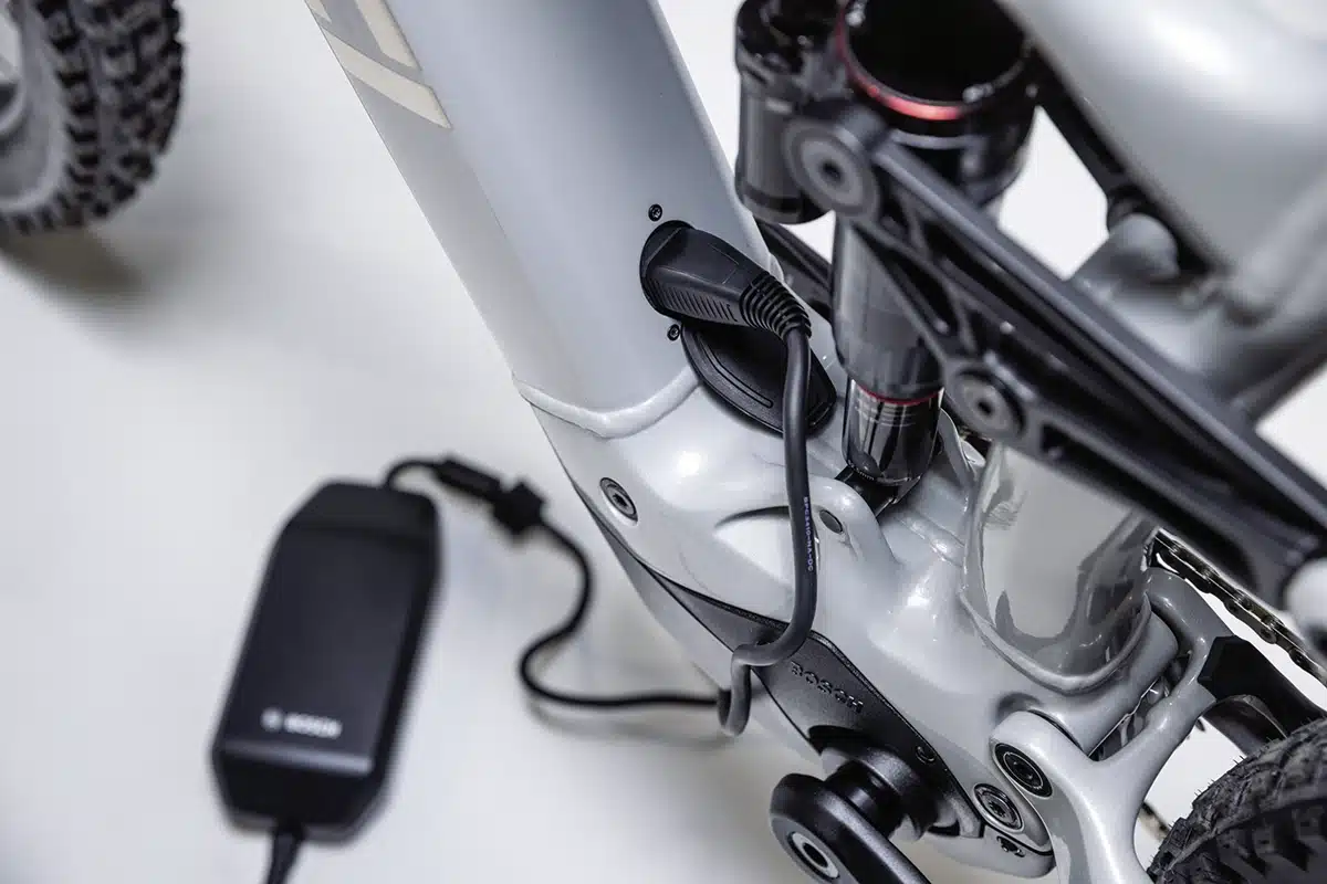 La batterie intégrée dans le tube diagonal n’étant pas amovible, le vélo doit faire le plein à proximité d’une prise électrique. L’autonomie varie évidemment suivant le mode utilisé. On peut espérer rouler une cinquantaine de kilomètres si on n’abuse pas du mode Turbo. On partira encore plus tranquille en emportant un prolongateur d’autonomie, qui rajoute 250 Wh d’énergie supplémentaire.