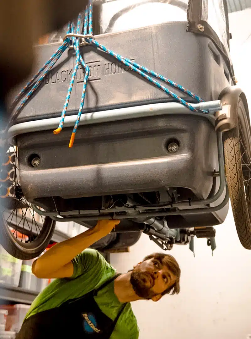 Avec l’explosion de popularité des vélos-cargos vient également le besoin d’un service après-vente de qualité. Allo Vélo possède un atelier équipé d’un monte-charge à vélo pour faciliter les réparations et offre, en prime, un service d’assistance routière. « On vient vous chercher très rapidement », assure le propriétaire. Vous habitez loin de Montréal ? Allo Vélo expédie ses vélos entièrement assemblés partout au pays. La révolution des vélos-cargos est à votre portée.